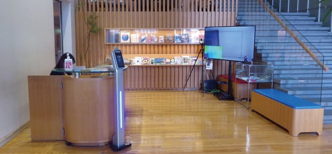 マップルでは、東京本社受付に「Face SC」を設置し、いつでも実機で顔認証検温を体感いただけますし、当社オフィスでのクラスター対策を実践しています。