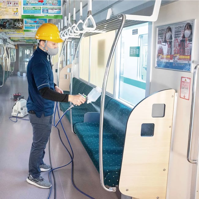 日常的に人が接触するところにウイルスを不活性化させる物質を含有した溶液を塗布しコーティングすることで、ウイルスの接触感染を抑止させる効果があります。オフィスや飲食店、タクシーやバス、鉄道などの公共交通機関の車内など、接触する頻度が高いところへの対策に活用いただけます。