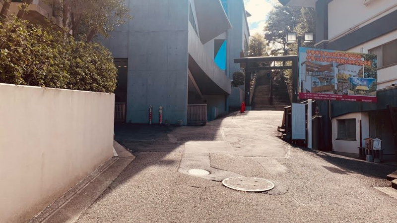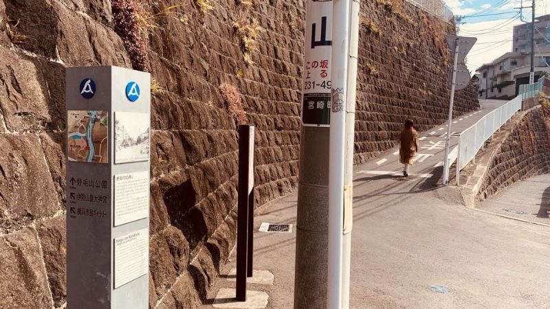 実際の景色はこちら。野毛の切通し周辺、たしかにすごい傾斜です!しっかりと土砂災害対策がされています。