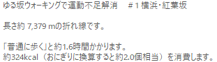 「ウォーキング 消費カロリー」で調べていると、やはり負荷のかかる坂道は消費カロリーが高い様子。たしかに、ジムのランニングマシンでも上級者は傾斜をつけてた気がします。(当たり前のように、現在は通っていません)
