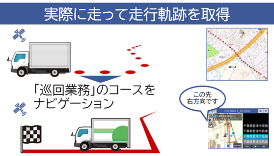 ルートナビゲーターでは、ベテランドライバーが走行した際にGPSログを取得し、取得したログを元にナビゲーションシステム上の案内経路を構築します。