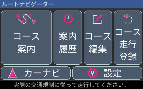 ルートナビゲーターは、コースを登録してのご利用以外にも、通常のカーナビとしてもお使いいただけます。