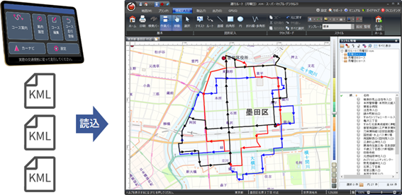 編集や作成を行わない場合でも、PCの大きな画面で、地図上にコースを表示して確認したり、コースの概要を印刷するといった使い方も可能ですので、業務の管理や効率化の検討の材料としてもご利用いただけます(※印刷利用では、地図の複製使用許諾が別途必要となります)。
