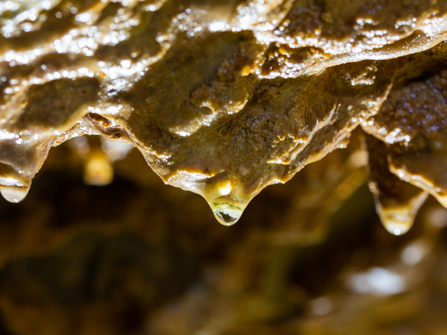 ドリーネは、カルスト台地で見られる地面がすり鉢状にへこんで出来た窪地のことです。カルスト地形はサンゴ礁が化石化して隆起した地形のため石灰岩が多く、地表を流れた水が石灰岩の割れ目から地下へ流れ込み、溶食作用によって鍾乳洞が形成されます。その鍾乳洞が出来る過程で、陥没してできた穴をドリーネと呼んでいます。