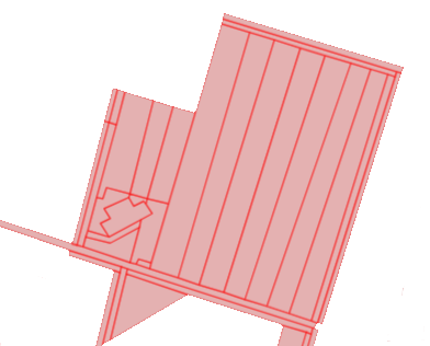 筆(土地)には戦争遺跡の建造物が筆(土地)として設定されていることがあります。高知県南国市の高知龍馬空港の近くにある前浜地区には「掩体壕(えんたいごう)」と呼ばれる施設が点在しています。掩体壕とはドーム型をした飛行機を格納する施設のことで、空襲などから飛行機を守ることを目的として造られました。地図で前浜地区の筆(土地)を見ると、大小さまざまな掩体壕の筆(土地)を見つけることができます。