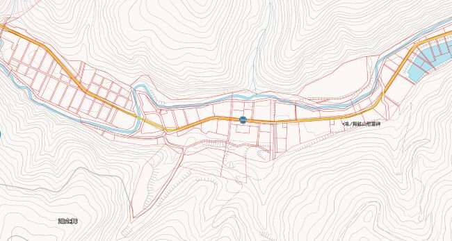現在は山に囲まれた静かな地域ですが、地図を見ると道路に沿って規則正しく整備された筆(土地)を見ることができます。ここにはかつて、たくさんの金が採掘され、東洋一の規模を誇ると言われた鴻之舞鉱山がありました。規則正しい筆(土地)は、鴻之舞鉱山に関わる人々が住み、施設が立ち並んだ鉱山町の痕跡です。