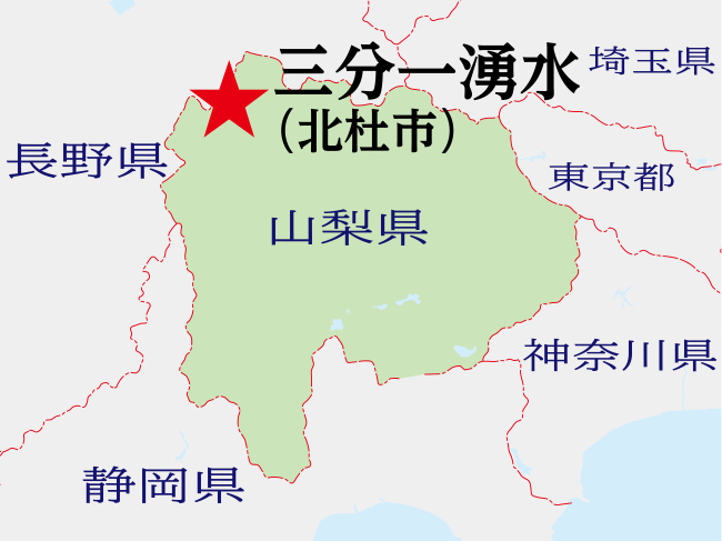 その後、湧水地は八ヶ岳南麓の山崩れにより押し流されるなどの災害に見舞われましたが、1944年(昭和19年)に今の形に修復され現在に至っています。三分一湧水は今でも農業用水として利用されており、管理組合や地元の方々によって管理されています。また、湧出量は1日8,500トンを誇り、水温は年間通して約10℃となっているため、夏は涼しく、涼を求めて訪れる人が絶えません。