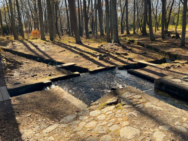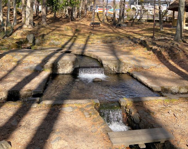 三分一湧水を見学すると、上流から流れてきた湧水が分水桝に集まり、枡の中に設置された三角石柱によって三方向に水が分配され流れていく様子を見ることができます。また、隣接する三分一湧水館では、八ヶ岳南麓の湧水の仕組みや水質について学ぶことができます。三分一湧水は先人の知恵によって誕生した水を均等に流す分配装置ですが、その姿は地図のポリゴンにも表されており、先人の苦労と知恵を感じ取ることができます。