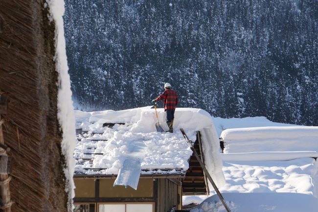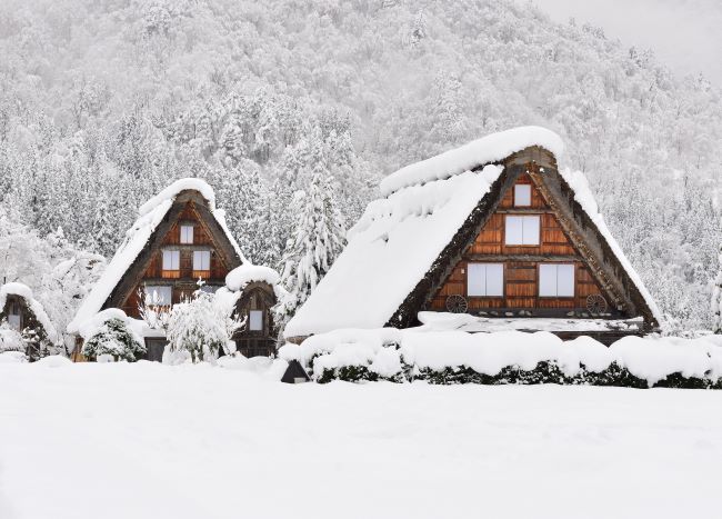 山岳地帯を南北に流れる庄川に沿って開けた白川郷は、季節によって風が南から北へ、北から南へと一定方向に吹き抜けます。そのため、妻面が南北を向いている建物は、風通しが良く、養蚕を行うのに適しています。また、合掌造りは屋根が東西に向いているために、日当たりがよく、積もった雪が解けやすいため、傾斜の大きな茅葺屋根によって雪は下へ滑り落ちます。さらに、日当たりが良いことは茅葺屋根が乾燥しやすくなる効果もあります。合掌造りはこの地に住む人々の生活の知恵と言えます。