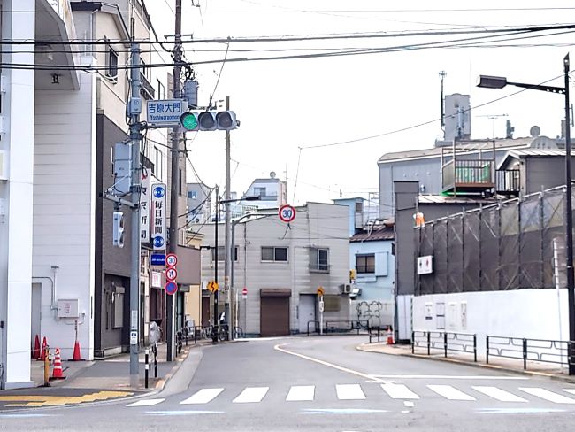 このような道が設計された背景には、吉原遊郭ならではの事情があったようです。外界から隔絶されている吉原遊郭にとって、碁盤の目に整備された街並みが大通りから直接見えてしまうことは都合が悪かったようです。一説によれば、道を曲げることで、遊郭の街並みが見えなくなり、外界とは異なる空間を維持したと云われています。一見すると、何の変哲もないポリゴンに見えますが、実は吉原遊郭の歴史を今に伝えているポリゴンなのです。