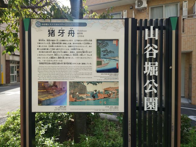 山谷堀公園にある猪牙船(ちょきぶね)の説明板