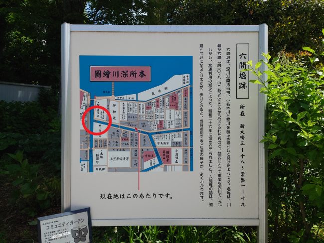 また、深川村の開拓時には、小名木川より堅川へ向けて水路が開かれたとされています。これらの水路は「五間堀」や「六間堀」と呼ばれ、周辺に住む人々にとって生活に欠かせない水路になりました。現在、これらの堀は埋め立てられ、公園や住宅、道路などに姿を変えていますが、公園の名前や路地などに、当時の痕跡を見つけることができます。