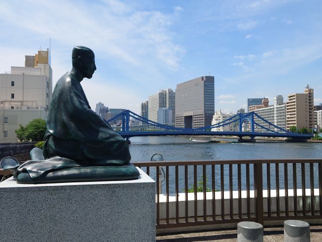 江東区常盤は江戸時代の俳人・松尾芭蕉が暮らしていた芭蕉庵があった場所として知られています。隅田川と小名木川が合流する付近には、深川芭蕉庵跡の石碑が建つ「芭蕉稲荷神社」や芭蕉像がある「芭蕉庵史跡展望庭園」、芭蕉に関する資料が展示されている「芭蕉記念館」があり、多くの人が訪れています。