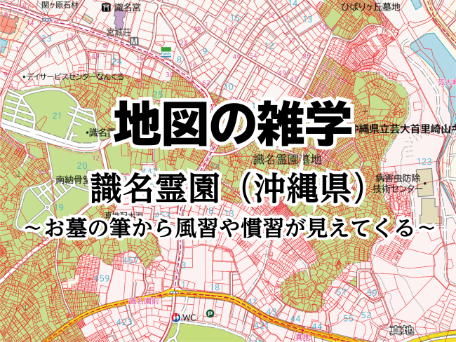 沖縄のお墓は、一基ごとに広い敷地を持つことが特徴です。沖縄県那覇市にある識名霊園では、細かく区分けされた筆(土地)を確認することができます。空中写真で見ると、筆(土地)は一基ごとに設定されていることがわかります。沖縄県内のお墓の筆(土地)も同様に大きな筆(土地)になっています。