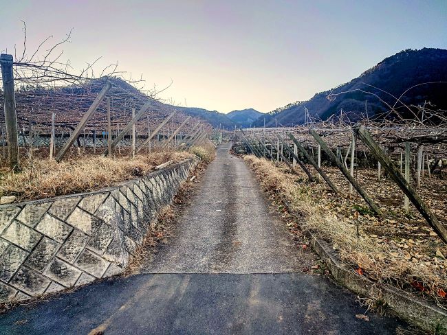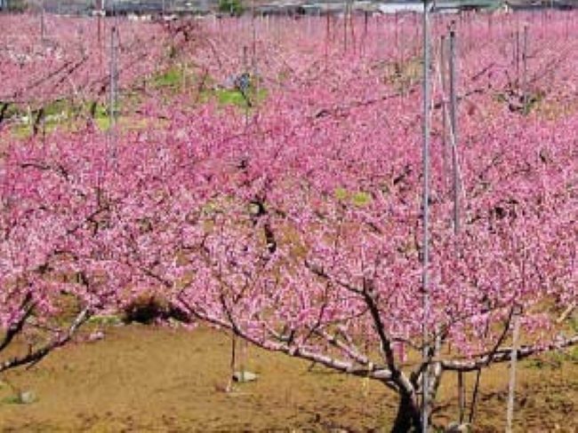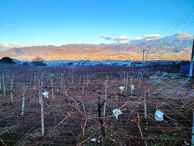 扇状地は水はけが良く、地下を流れる伏流水もあるため、果樹などの土地の特性を生かした作物の栽培が盛んです。笛吹市一宮地域では、4月になると桃の花が一斉に咲き誇り、まるで桃源郷のような美しい風景が広がります。また、甲州市勝沼地域ではブドウの栽培が盛んで、ワインの一大生産地になっています。