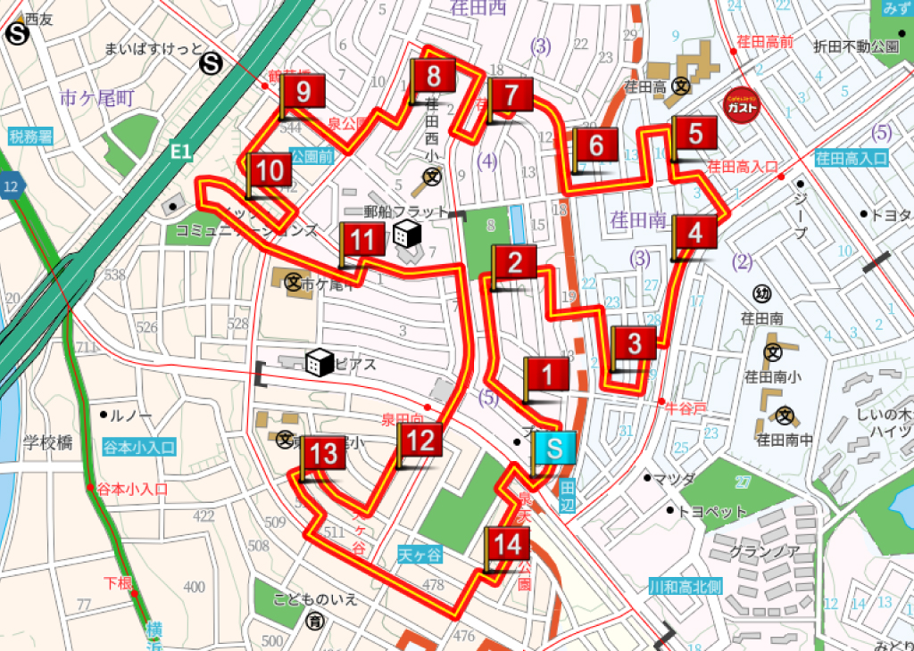 出発地から複数の経由地を通り、目的地までのルートを探索します。