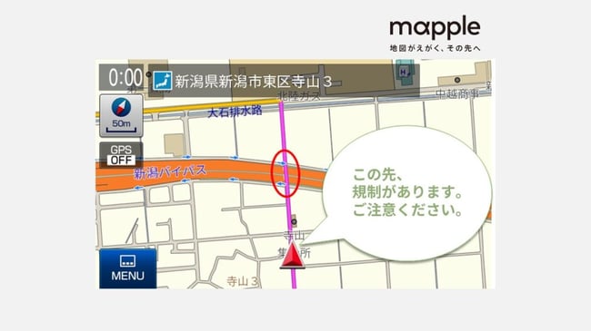 トラックやバスを始めとする大型車両の運行において、交通規制情報は必要不可欠です。特に鉄道の高架などに衝突した場合は多額の損害賠償責任が発生する可能性もあり、運行事業者様にとって大きな負担につながる可能性があります。マップルは今後も最新の地図と交通規制情報を搭載したカーナビアプリの提供を通じて、業務用車両をお使いになるドライバー様、事業者様の安心・安全で確実な運行を支援いたします。