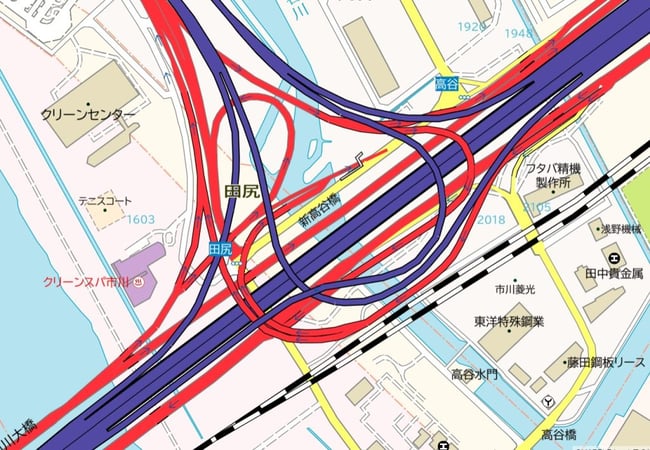 <立体交差や道路幅員など実際の形状を表現した道路>
