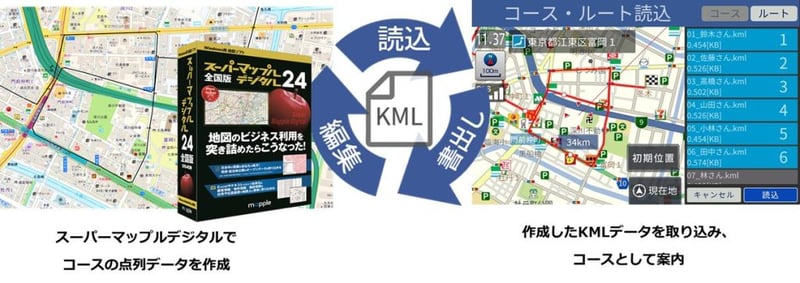 (1)地図ソフト「スーパーマップル・デジタル」と連携したルート作成・編集