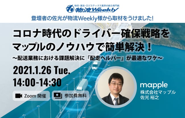 ※当ウェビナーでご紹介する「配走ヘルパー」が物流ウィークリーの取材を受けました。