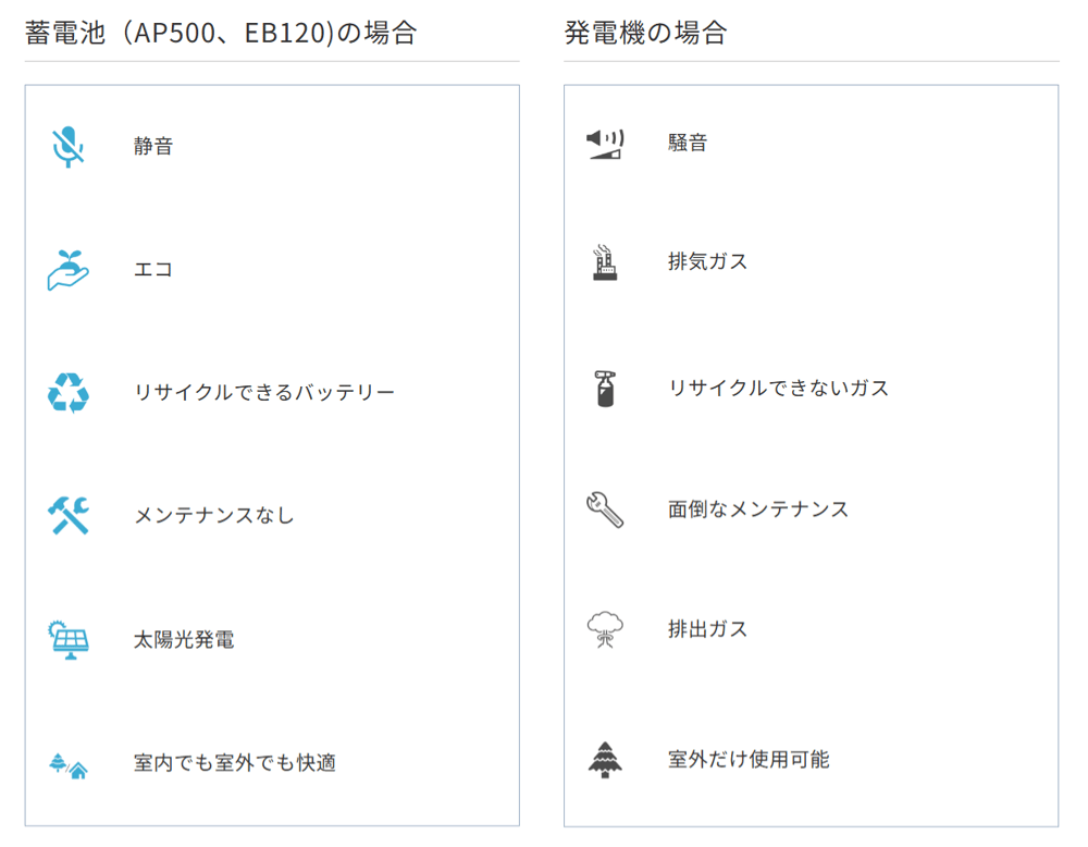 一度にどれくらい電化製品を使えるかを表す数値で、出力が大きいとそれだけ多くの電化製品を同時に使用できます。 |