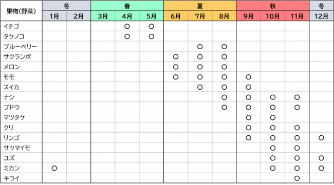 (例)『MAPPLEご当地名物』の収録の分類、および季節情報・・「味覚狩り」