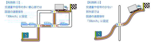 出発地から目的地までの所要予測時間を計算する速度値を道路種別毎に任意に変更し、交通状況に合わせた結果を求めることができます。