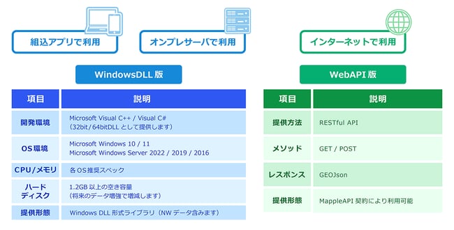 また、WebAPIでのご利用をお考えの方は、MappleAPIのルート探索APIをご利用いただけます。詳しくは法人向け地図API【MappleAPI】紹介ページをご覧ください。