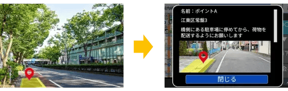 停車位置に関する画像やコメントも登録できるので、安全な停車位置への確実な誘導を実現します。