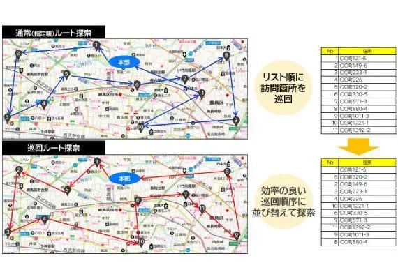 立ち寄り地点を選択し、『巡回探索』を行えば効率のよい廻り方をお知らせします!