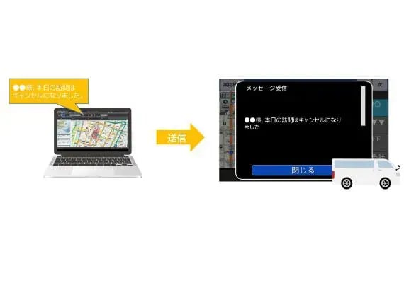 また、特定の車両に向けたリアルタイムでのメッセージ発信も可能ですので、突然予定に変更があった場合も安心です。
