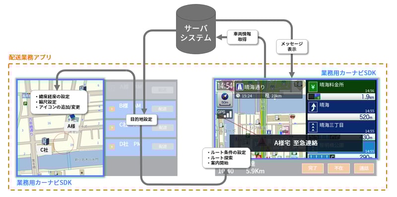 ※「業務用カーナビ(SDK)」を用いた業務アプリの開発受託もご相談ください。