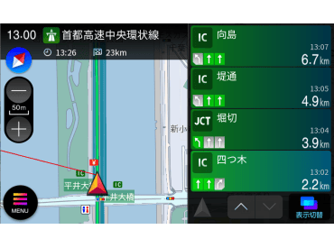 高速道ではIC、JCT、SA、PAなど誘導施設を表示します。