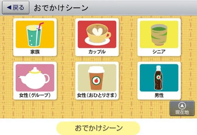 マップルナビはおでかけするシチュエーションに合わせた「おでかけシーン検索機能」も搭載しています。家族、カップル、女性グループ、シニアなどターゲット別に向けておすすめのスポットを紹介してくれるので、そのときのシチュエーションによって、ピッタリの場所を選択でき、楽しむことができます。例えば、家族で「遊ぶ・観る、体験・観光スポット」の名所を検索すると伝統的町並みや桜の名所などのスポットを案内してくれます。