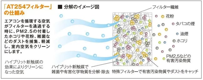 • エアコンが空気清浄機としても機能するようになり、空気中の有害物質を付着。